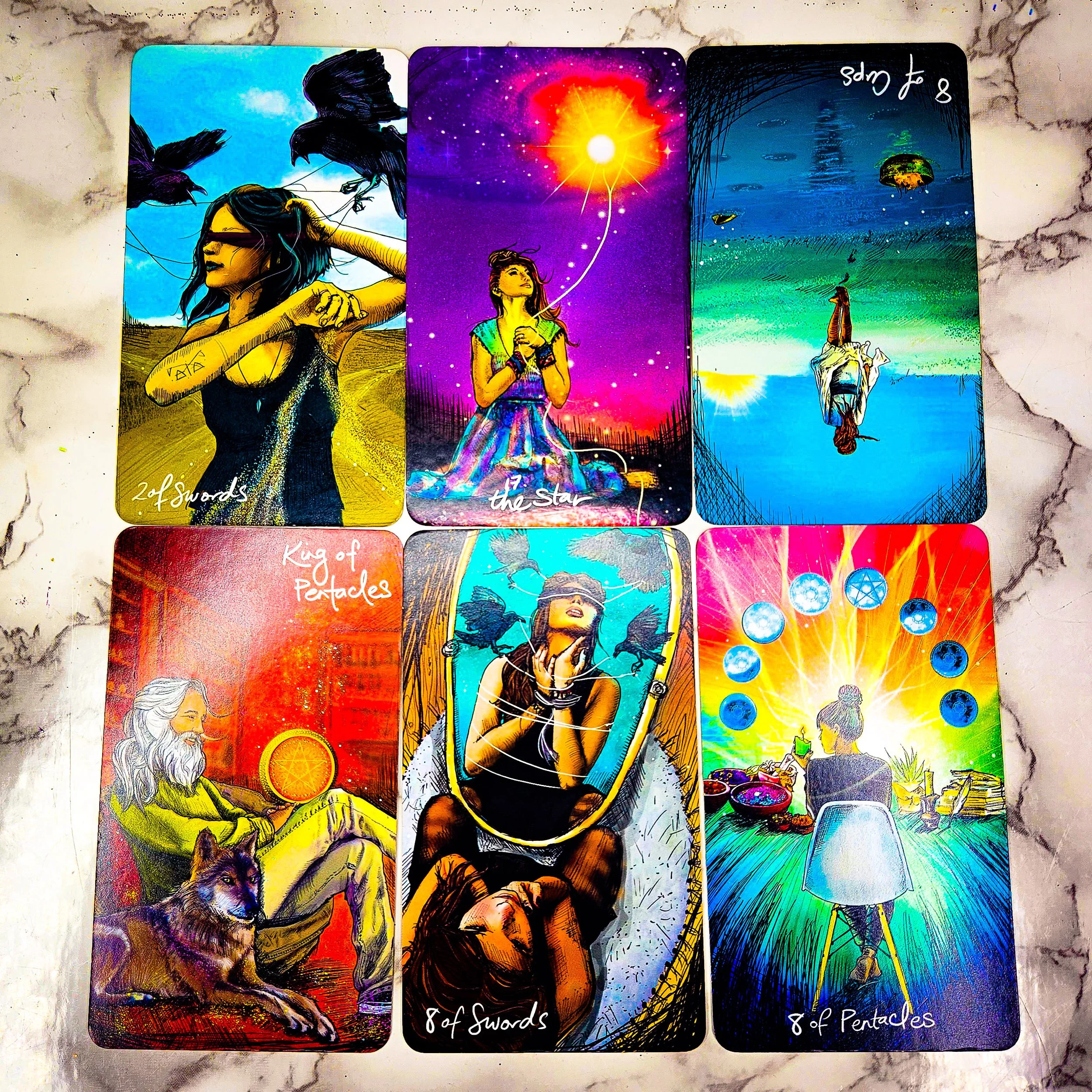 CARDS: 2 of Swords | The Star | 8 of Cups Reversed | King of Pentacles | 8 of Swords | 8 of Pentacles